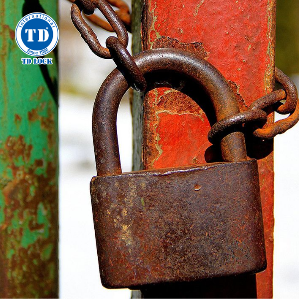 Khóa bị rỉ sét, oxi hóa bề mặt và ăn mòn nghiêm trọng