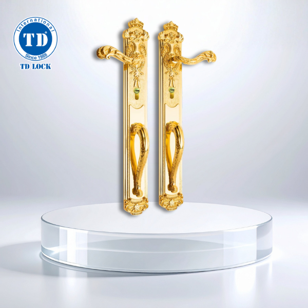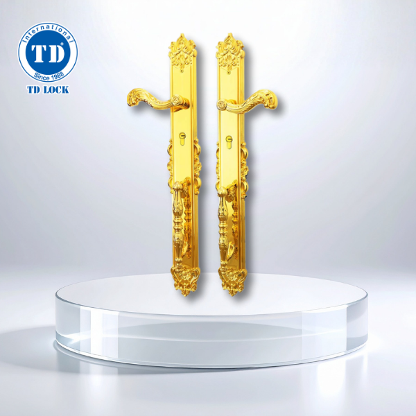 Mang đậm hơi thở kiến trúc Ý, mẫu khóa Roma với tay gạt dài uy nghi và hoa văn uốn lượn mềm mại là minh chứng cho kỹ thuật đúc áp lực thượng thặng của TD. Được mạ vàng 24K rực rỡ, bộ khóa này tượng trưng cho sự giàu sang và phong thái lịch lãm của gia chủ trong năm mới.