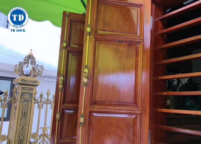 - Hai thanh chốt đối xứng nhau tạo nên lực kẹp chặt giữa cánh cửa với khung, giúp cửa không bị rung lắc hoặc bung ra dưới tác động của gió hoặc ngoại lực.