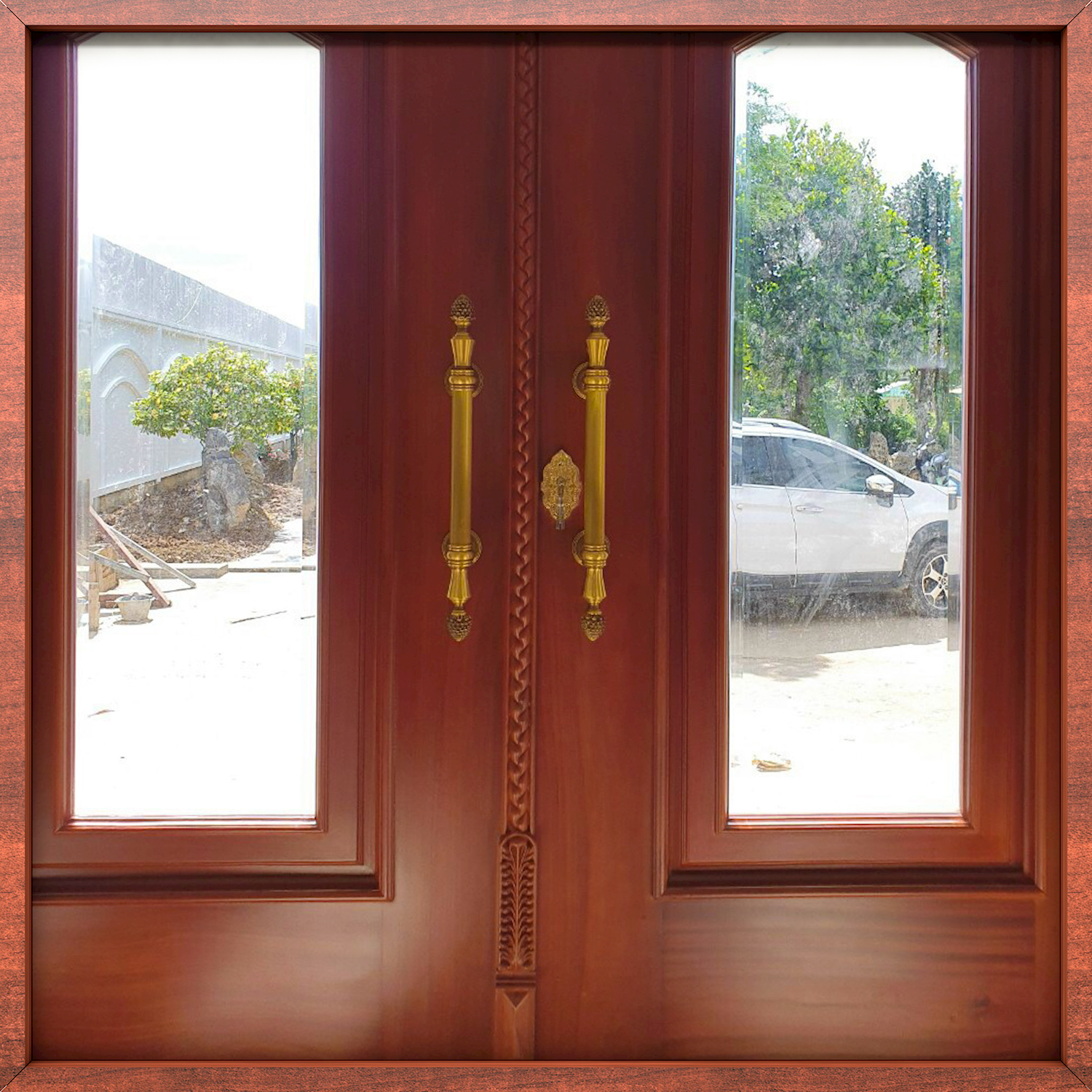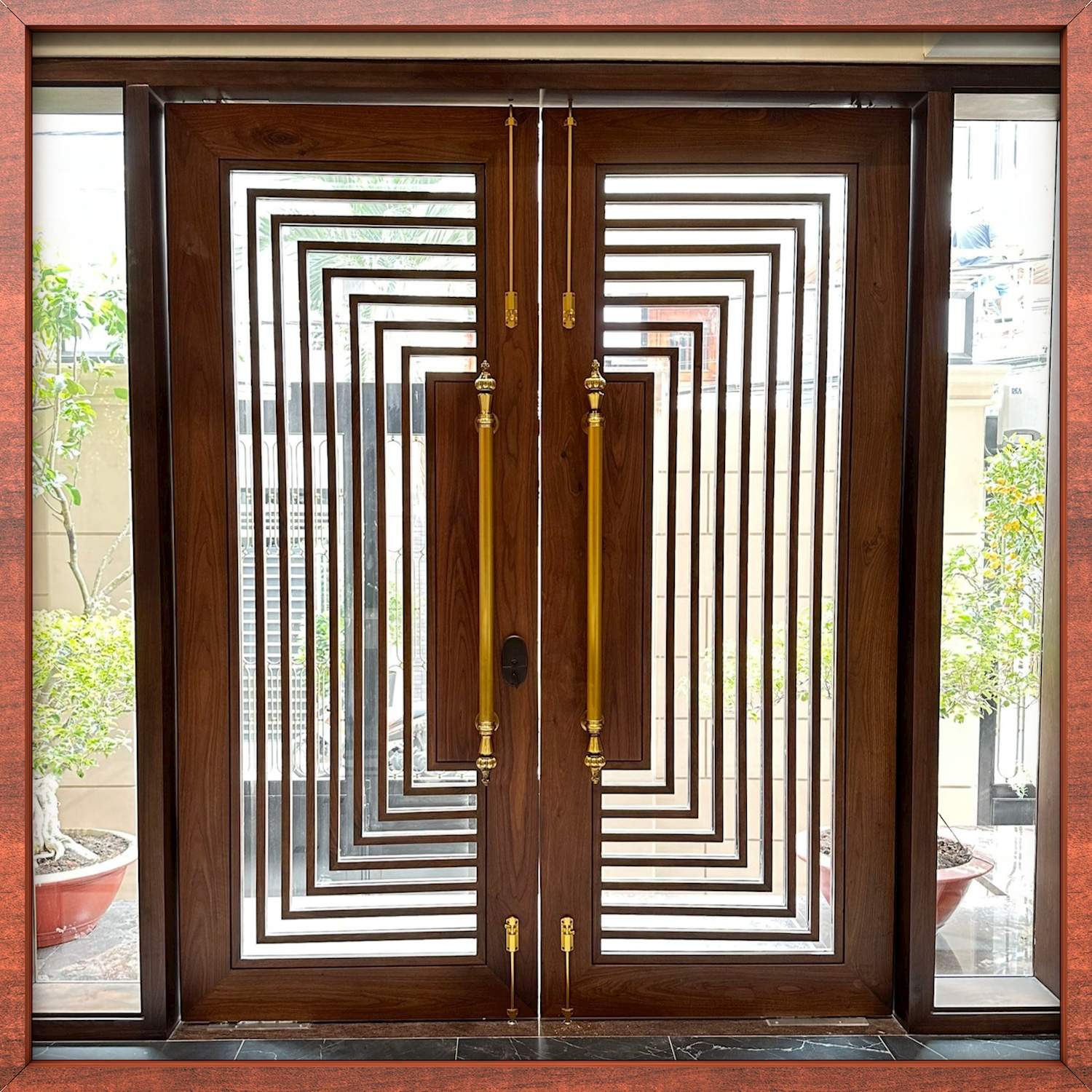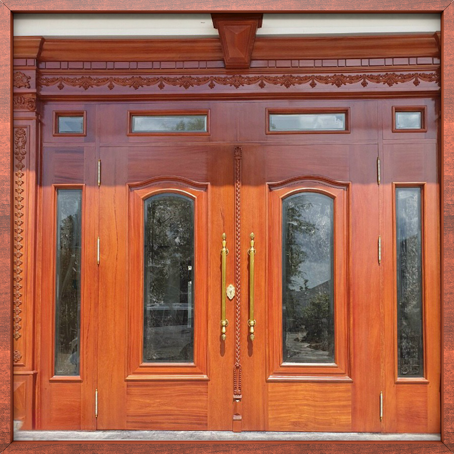 Tiếp theo đó là tay nắm sảnh có họa tiết hoàng gia.