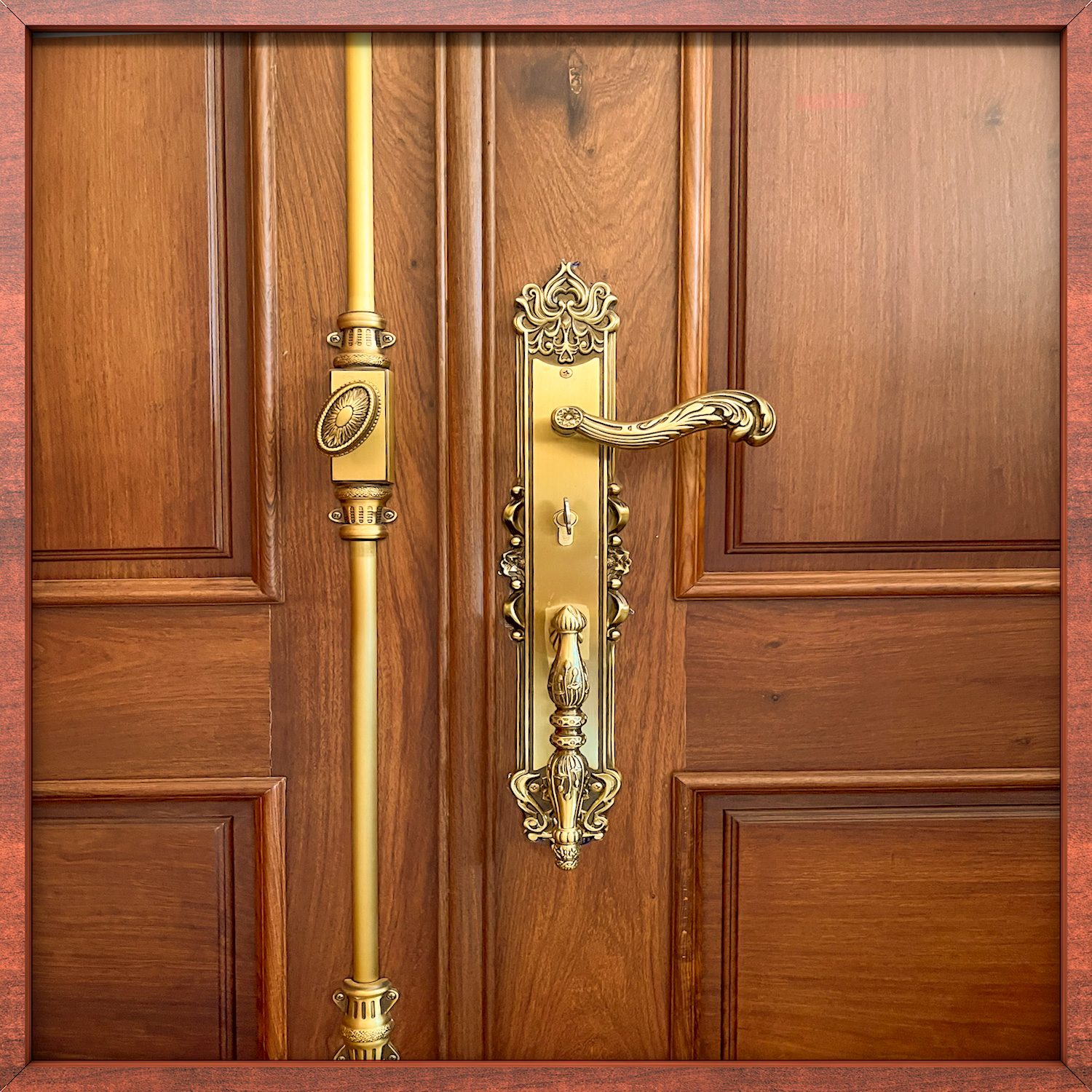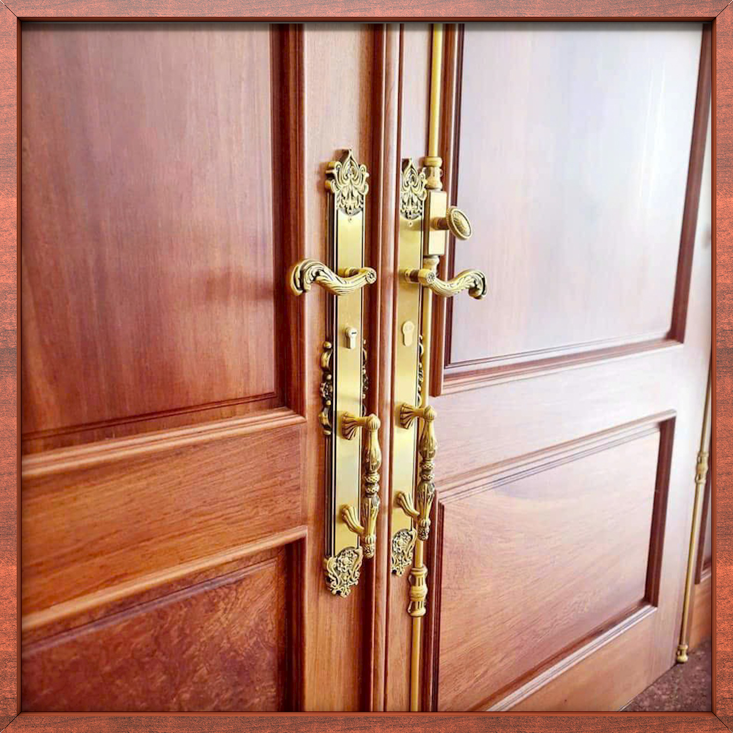 Không chỉ cửa chính, cửa phụ cũng được tô điểm bởi Bộ khóa LOTUS và bộ CREMONE của TD.