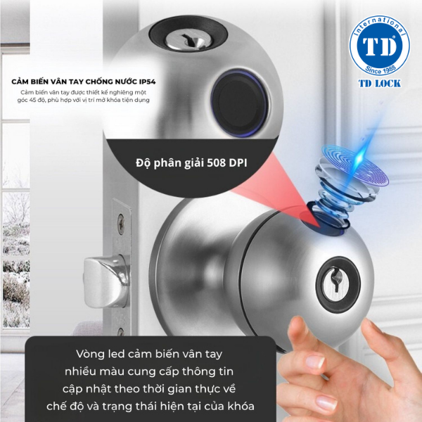 Với cảm biến vân tay có chỉ số chống nước IP54, giúp khóa hoạt động ổn định trong mọi điều kiện môi trường, phù hợp với thời tiết nóng ẩm Việt Nam.